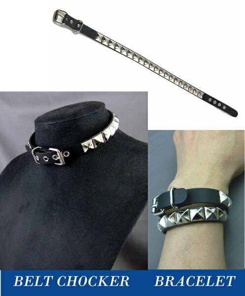 ◆ピラミッド鋲のベルトネックレス ◆ロック・パンクファッション定番アイテム◆ロック、パンク、ボンデージ、コスプレ系ファッション、ど派手なアイメイクや反逆的なファッションでコーディネイトされる王道デザイン ◆巻きやすいよう、薄手の革素材を使っております。