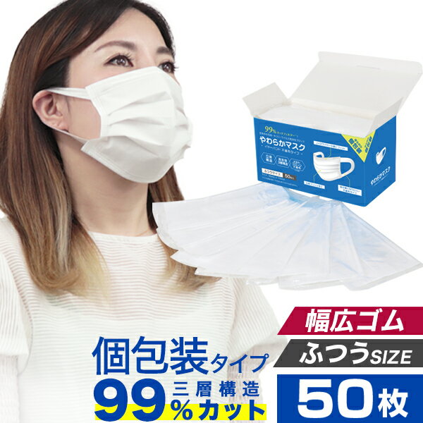 【数量限定価格】【在庫あり・日本国内発送】マスク 50枚 個包装 99%カット 耳が痛くならない 個包装マスク 大人用 使い捨てマスク 白 大人用 普通サイズ 三層構造 不織布マスク 使い捨て 飛沫防止 花粉 防護マスク 男女兼用 即納 送料無料 ■予26