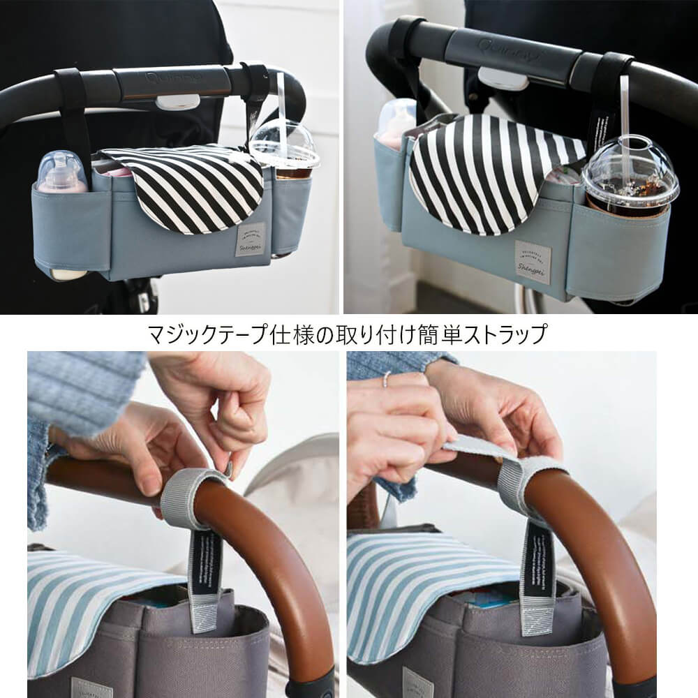 商品情報 商品特徴・素材 【商品特徴】・赤ちゃんのおむつ、哺乳瓶、おしりふきなど、必要なものをたっぷり収納してベビーカーに取り付けられる!・マジックテープ仕様の取り付け簡単ストラップ。