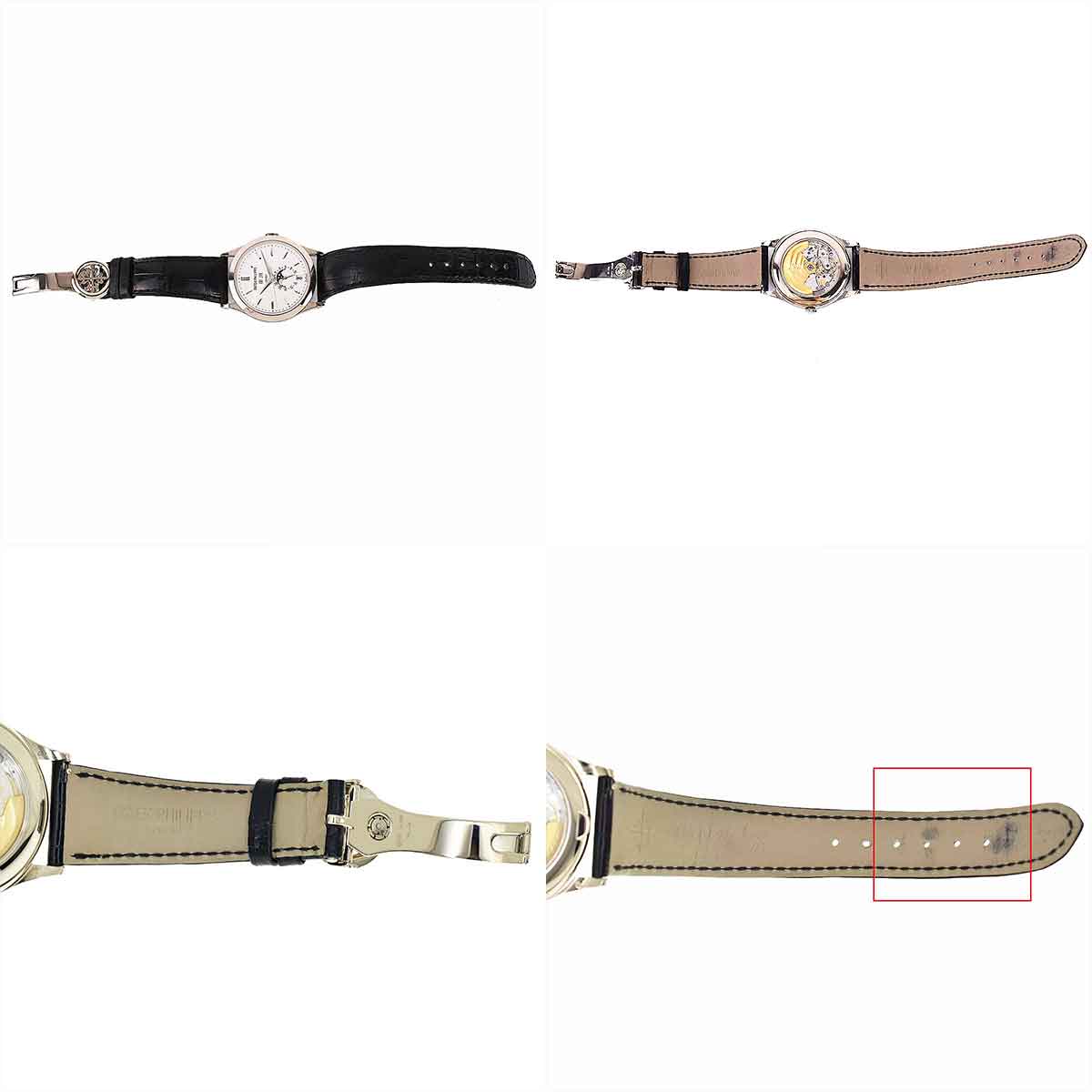 Please note. We do our best to take pictures of products. if there would be different from real colors as by adjustment of your monitor. 商品説明Item Description 商品番号Item No. 321151207 ブランドBrand商品名Name パテック フィリップPATEK PHILIPPEアニュアルカレンダーAnnual calendar 参考定価/Retail Price品番・型番/Ref.シリアル/Serial No -5396G-011- 素材Material 750 K18 WG ホワイトゴールド、ブラッククロコベルト750 K18 WG White Gold, Black Croco Belt 腕周りBand length(inch)ベルト幅Band width(inch)ケースサイズCase size(inch) 約170-220mm6.69"-8.66"(Approx)約20mm0.78"(Approx)約38.0mm(リューズ除く)1.49"(Approx)(Excluding crown) 重さWeight 約102.7g"(Approx) 文字盤Display シルバー・オパーリン文字盤、ゴールド植字インデックス、センターセコンドSilver opaline dial, gold typesetting index, center seconds ムーブメントMovement 自動巻Automatic 防水Waterproof - ガラスGlass - 付属品Comes with パテックフィリップ箱、ケース、PP保証書(2019年2月)、冊子Patek Philippe Box, Case, PP Warranty (Feb 2019), Booklet 仕様Specification 曜日、日付、月を窓表示、ムーンフェイズ、24時間表示サブダイヤルWindow display of day, date and month, Moon phase, 24-hour display subdial その他コメントComment - 保証期間 6ヶ月(ムーブメントの自然故障の場合) お問合せTel 03-3455-7834+81-3-3455-7834 コンディション詳細 ※商品ランクは当店の基準となります。