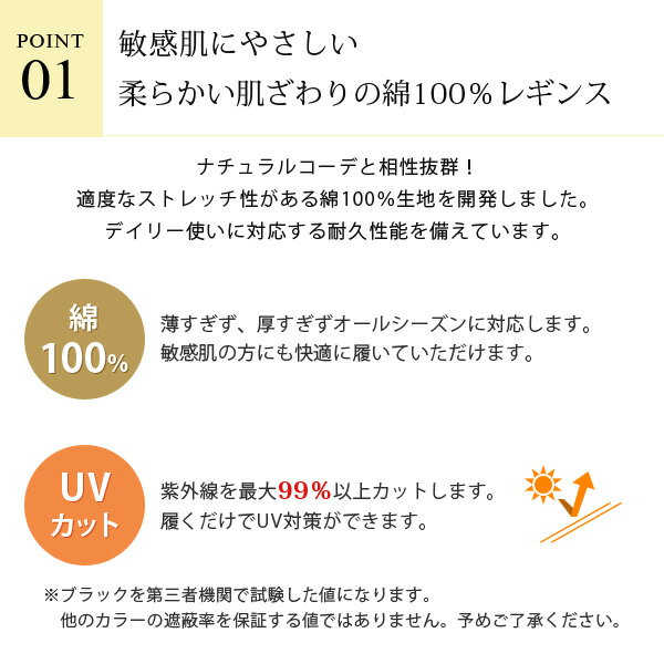 商品説明 敏感肌の人にやさしい綿100%の7分丈レギンスです。