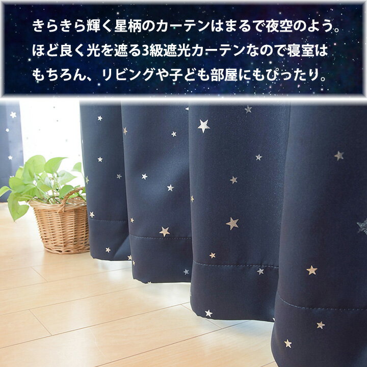8 商品詳細 材質 本体:ポリエステル100% アジャスターフック(Bフック)、同色のタッセル付属 サイズ 【幅150cm 1枚】 200×215cm 200×225cm 200×230cm 200×235cm 200×240cm 製造国 中国 商品説明 ・星柄が可愛いドレープカーテンです。